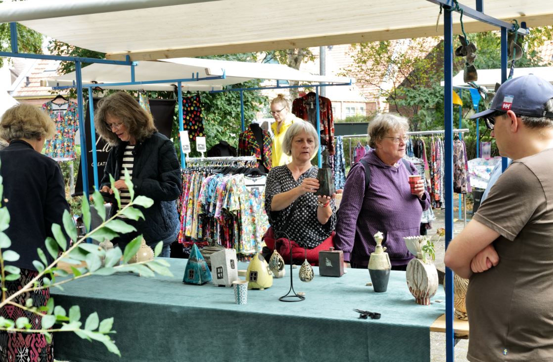 Op de markt waren verschillende kunstdisciplines aanwezig, waaronder schilderijen, beelden, keramiek en handweverij. “Maar er was ook kleding en textiel te koop, borduursels en er konden boeken gekocht worden waarbij ook schrijvers aanwezig waren. Sommige standhouders hebben goede zaken gedaan. Maar ik denk dat voor iedereen geldt dat het een succesvolle en mooie dag was. Daar kon de regen ook geen verandering in brengen. In de middag begon het wat te regenen, maar de mensen hebben zich niet laten kisten.”