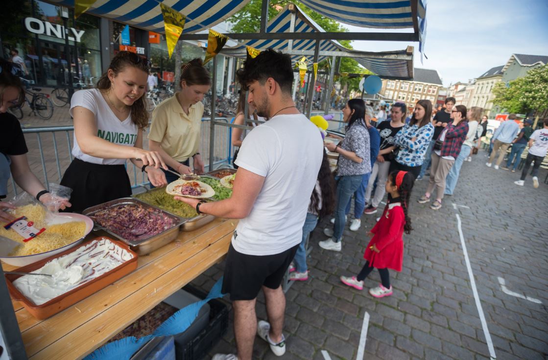 Ruim zevenhonderd mensen hebben maandagavond een diner genuttigd op de Vismarkt. Het diner was een initiatief van studentenvereniging Navigators. Manou de Groot van de studentenvereniging is tevreden over het verloop.