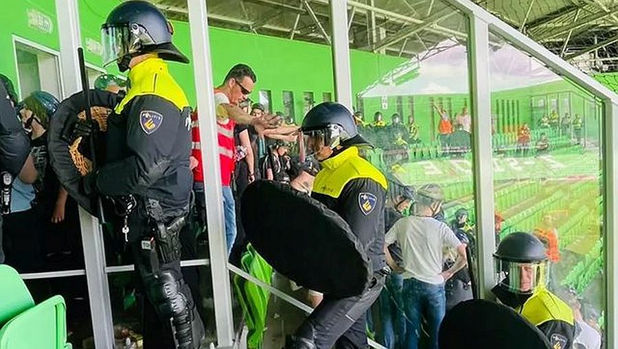 De bus reed de studenten vervolgens naar de Euroborg, waar het rellen verder ging. “We hebben hier wel van geleerd dat we niet met de ME moeten gaan klieren, dat heb ik zeker gevoeld”, vertelt student beveiliging Ries Tjallings. “Het voelde ook heel echt, want er zijn zelfs een paar tikken uitgedeeld door de ME.”