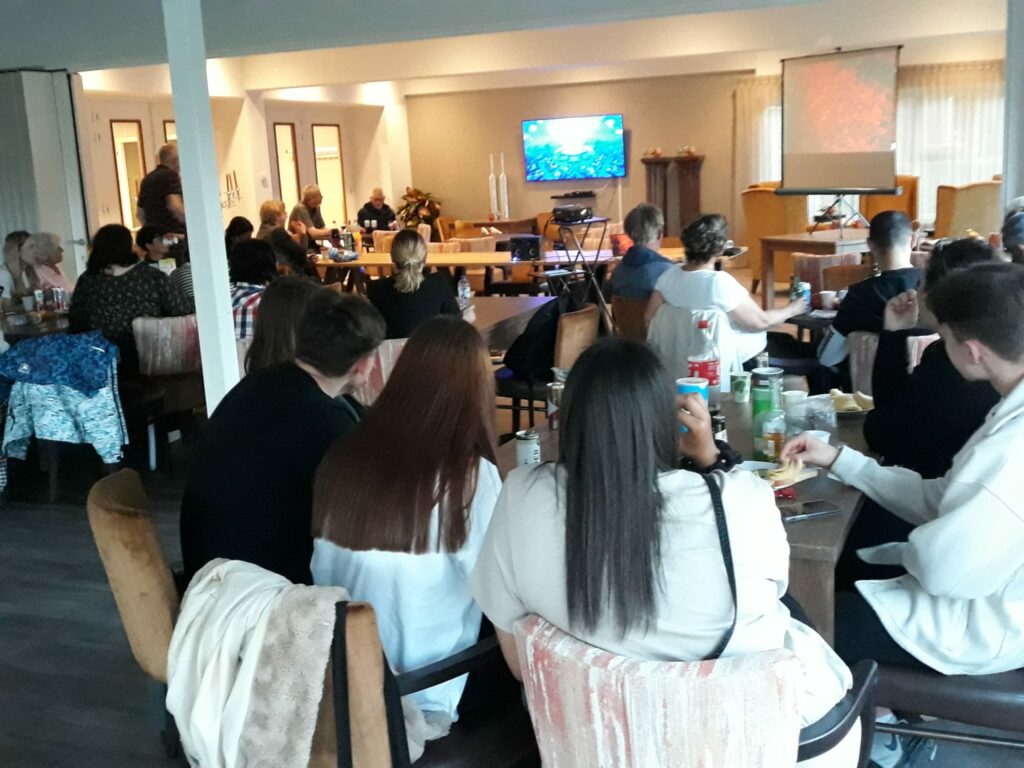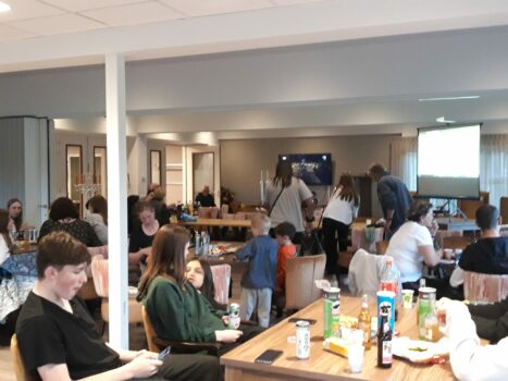 “Tot 22.00 uur was het een hele gezellige avond. De afgelopen dagen was het idee ontstaan om met de vluchtelingen, die in het Nescio-hotel in Haren verblijven, het Songfestival te gaan kijken in wooncomplex De Erasmusheem. Vrijwilligers hebben gisteravond een groot scherm en een beamer geïnstalleerd, de Oekraïners hadden hapjes en drankjes meegenomen. En men genoot duidelijk. Tot om 22.00 uur de stroom uitviel. In eerste instantie heeft men via smartphones het festival proberen te volgen. Kort nadat de stroomstoring begon trad namelijk Oekraïne aan. Dat lied werd luidkeels meegezongen.”