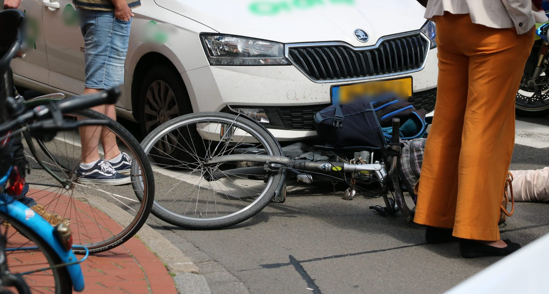 Op de kruising Nieuwe Ebbingestraat met de Turfsingel is maandagmiddag een fietser gewond geraakt bij een botsing met een personenauto.