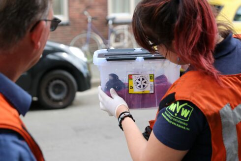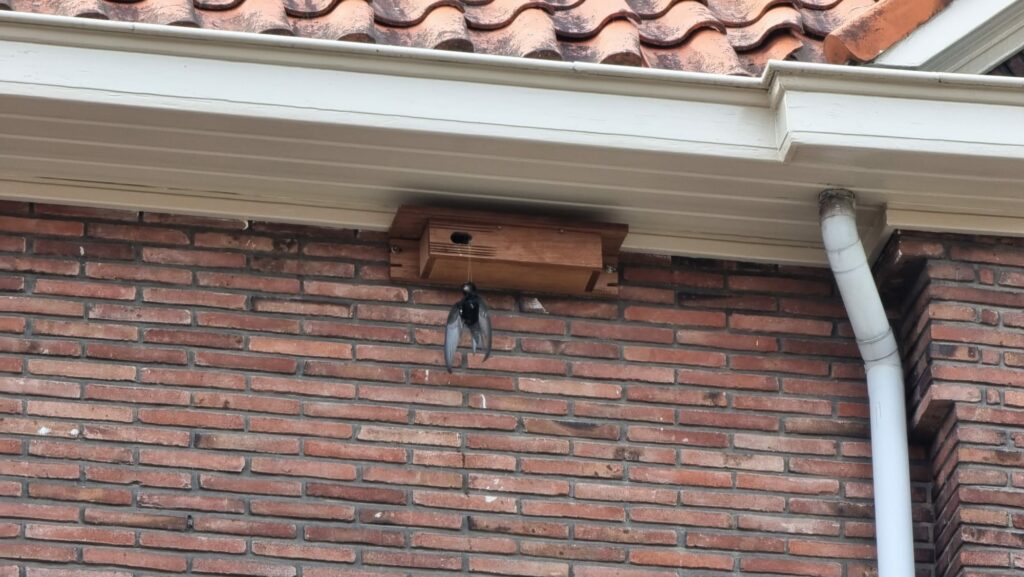 De melding van een dier in problemen kwam rond 17.00 uur binnen waarop een hoogwerker ter plaatse werd gestuurd. “Het dier is vast komen te zitten in een draad die onder een gierzwaluwnest hangt”, vertelt Wind. “Omstanders zagen de gierzwaluw verwoede pogingen doen om los te komen, maar dit gelukte niet. Daarop werden de hulpdiensten gebeld.