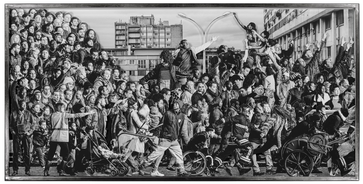 Het gaat om drie fotocollages uit de serie Chroniques de Clichy Montfermeil. De werken tonen de ‘figuranten’ van de grote rellen in de Parijse buitenwijk Clichy Montfermeil van 2005.