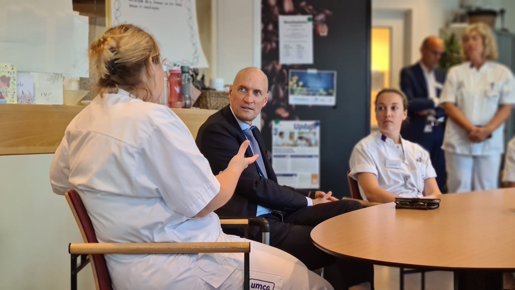 Minister Ernst Kuipers (D66) van Volksgezondheid heeft woensdagmiddag een bezoek gebracht aan het UMCG. Kuipers liet zich informeren over verschillende succesvolle Covid-projecten die in het UMCG bedacht zijn.