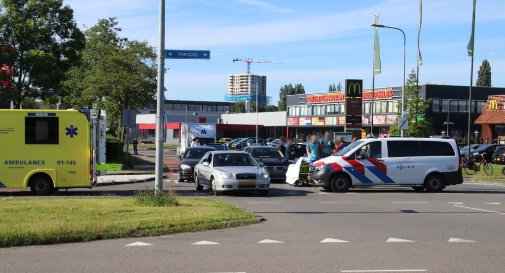 De scooterrijder reed over het fietspad langs het Hoendiep toen hij werd geschept door een automobilist. De gewonde scooterrijder werd opgevangen door medewerkers van de ambulancedienst. Het is niet bekend of de scooterbestuurder naar een ziekenhuis is overgebracht.