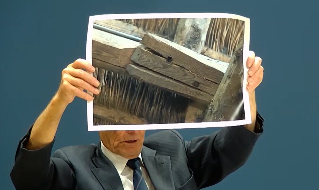 Vlak voordat de commissie haar verhoor afrondt, toont Nijhof een foto van een betonnen balk in zijn huis: “Deze scheuren zitten ook in de Groninger mens. Laat dit een voorbeeld zijn voor jullie. Dat jullie niet meer scheuren willen hebben.”