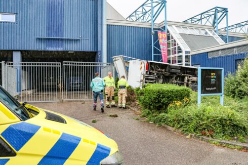 Uiteindelijk raakte de persoon niet gewond. “De bestuurder is wel even gecontroleerd in de ambulance, maar hoefde niet mee naar het ziekenhuis.” De politie doet onderzoek naar de precieze toedracht. De bestelbus is geborgen door een bergingsbedrijf. Volgens nieuwsfotograaf Mike Weening van Weening Fotografie is het busje zwaar beschadigd geraakt. “Het busje was geladen met steigeronderdelen voor festivals waar lampen aan kunnen hangen.”