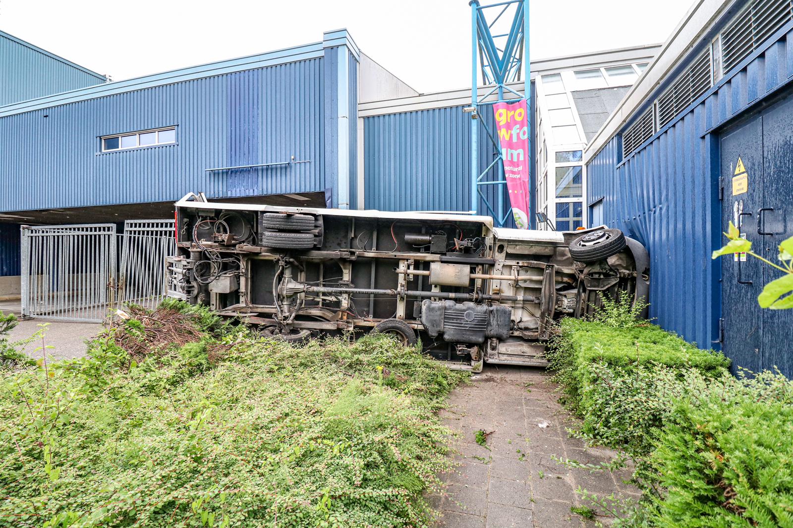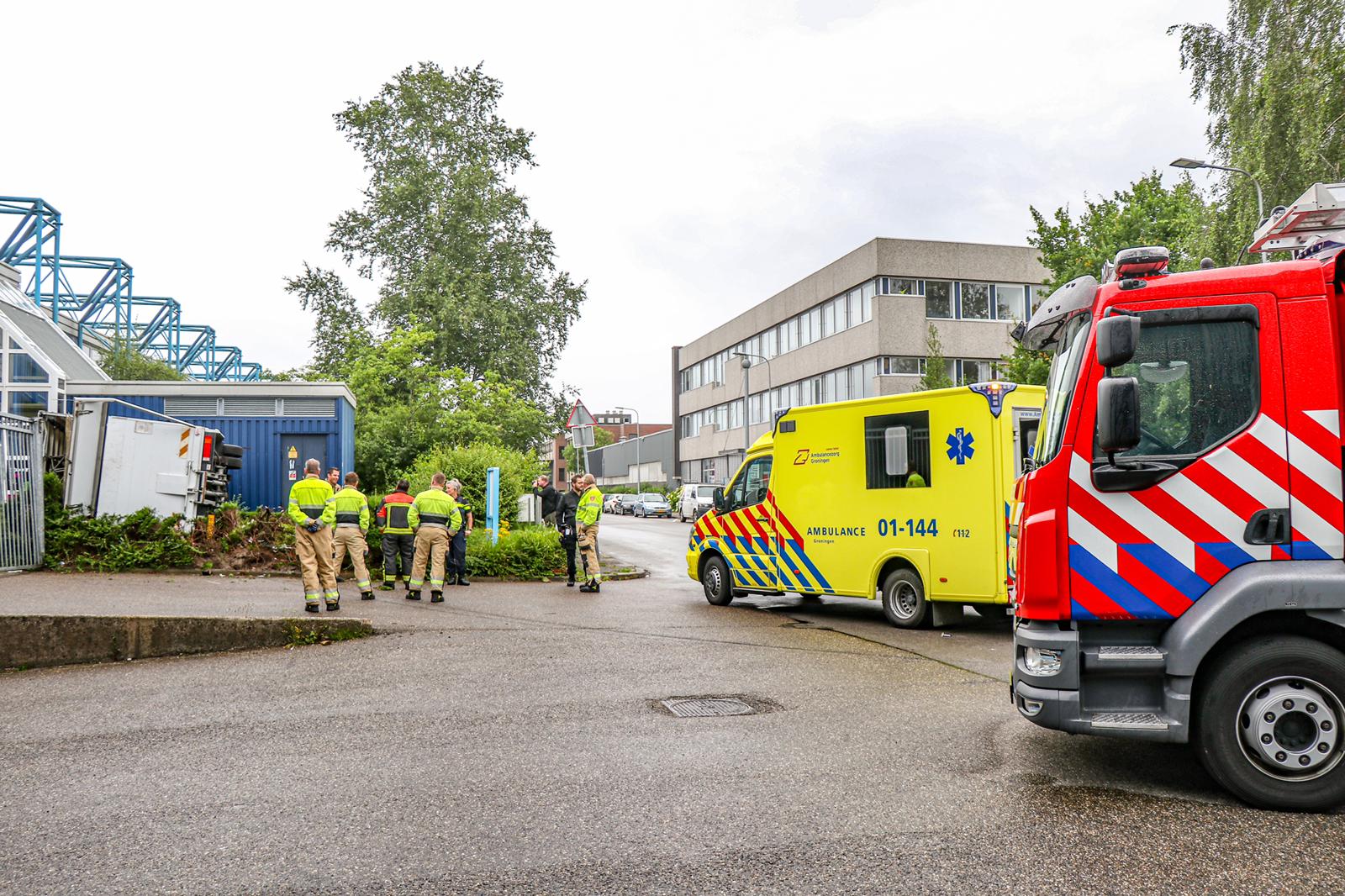 Bij een verkeersongeluk op de Neutronstraat op bedrijventerrein Hoendiep is zondagochtend een bestelbus op zijn kant terecht gekomen en tegen een bedrijfsgebouw beland. Dat meldt nieuwsfotograaf Rick ten Cate van tencatefotografie.nl.