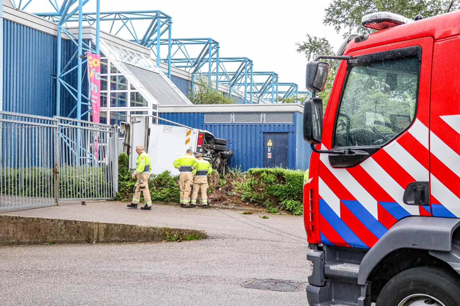 Het ongeluk gebeurde rond 09.10 uur. “Het gaat om een eenzijdig verkeersongeluk”, vertelt Ten Cate. “Het lijkt erop dat de bestuurder uit de bocht is gevlogen. Het voertuig is daarbij omgeslagen, in de struiken terecht gekomen en is tegen het pand tot stilstand gekomen.” Hulpdiensten rukten aanvankelijk met groot materieel uit. De politie, een ambulance en ook de brandweer werden opgeroepen omdat het vermoeden was dat de bestuurder bekneld was komen te zitten.