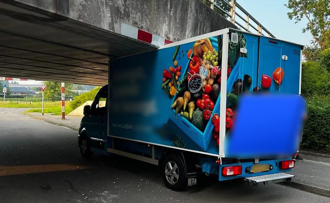 Het is niet voor het eerst dat een bestelbus van deze supermarkt zich klemrijdt onder het viaduct. Iets meer dan een jaar geleden deed een collega van de supermarktbezorger precies hetzelfde.