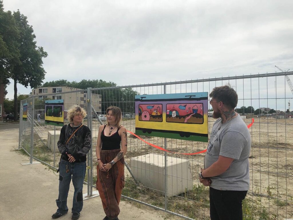 “In eerste instantie was het plan om aan de zuidzijde van het station een kunstwerk aan te brengen op de schutting die daar stond”, vertelt graffitikunstenaar Elroy Gramsbergen. “Maar in februari trok er een zware storm over die korte metten maakte met de schutting. Er is toen besloten om er geen nieuwe schutting neer te zetten, maar een hek. Maar al snel kwam de vraag of we daar toch niet iets aan kunst konden aanbrengen. Dit omdat men anders ook maar uit keek op een kale zandvlakte. En zo is het idee ontstaan.”