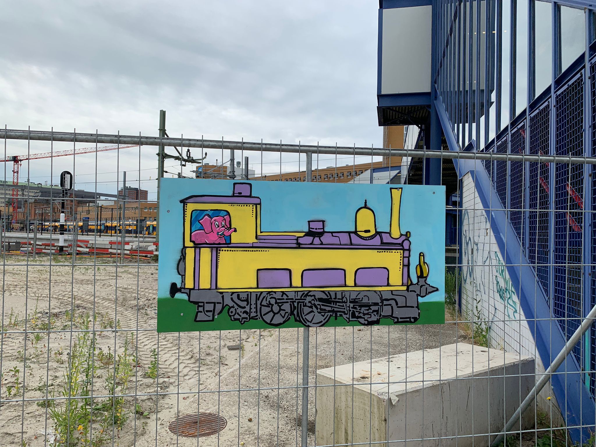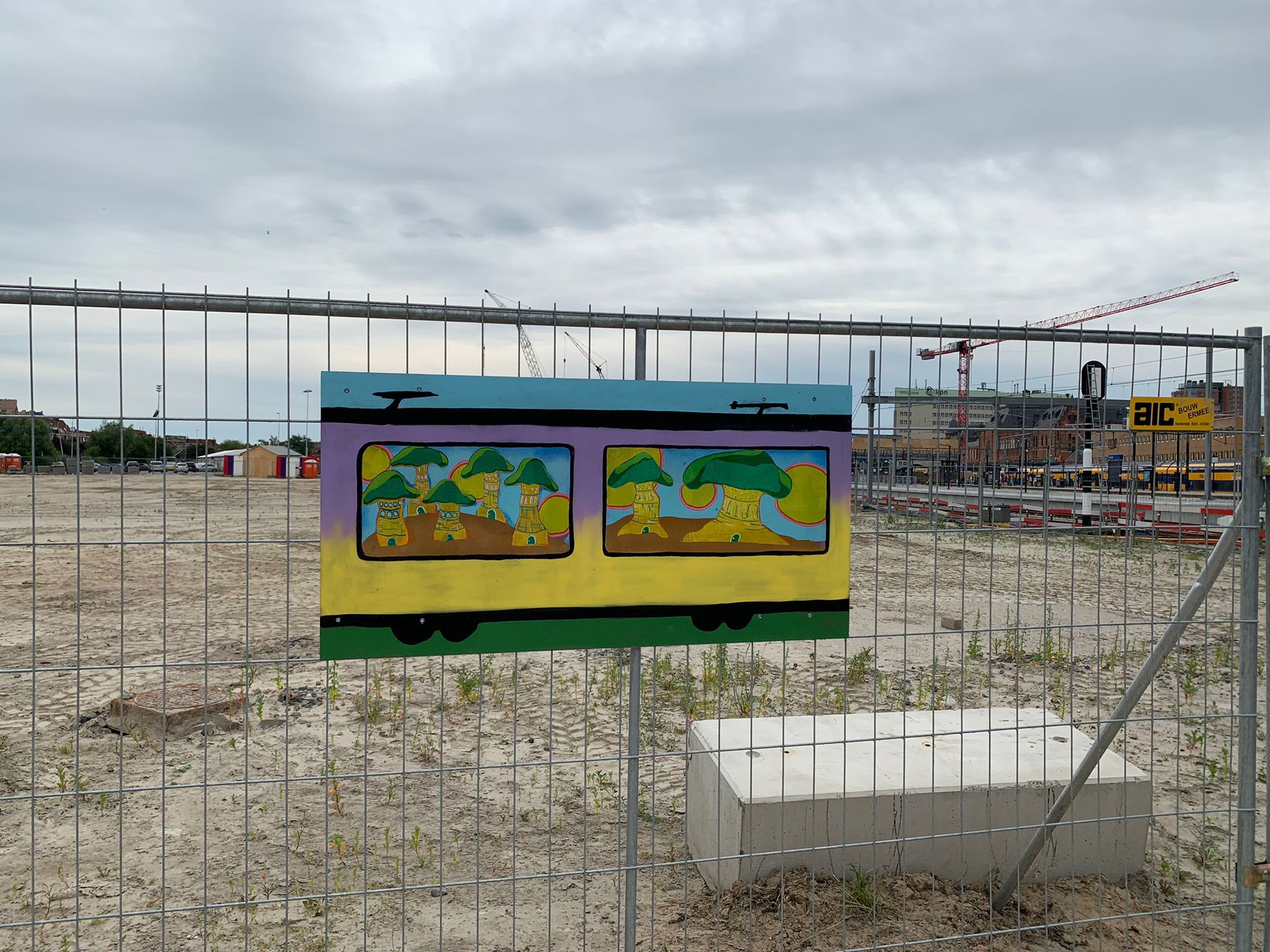 “In eerste instantie was het plan om aan de zuidzijde van het station een kunstwerk aan te brengen op de schutting die daar stond”, vertelt graffitikunstenaar Elroy Gramsbergen. “Maar in februari trok er een zware storm over die korte metten maakte met de schutting. Er is toen besloten om er geen nieuwe schutting neer te zetten, maar een hek. Maar al snel kwam de vraag of we daar toch niet iets aan kunst konden aanbrengen. Dit omdat men anders ook maar uit keek op een kale zandvlakte. En zo is het idee ontstaan.”
