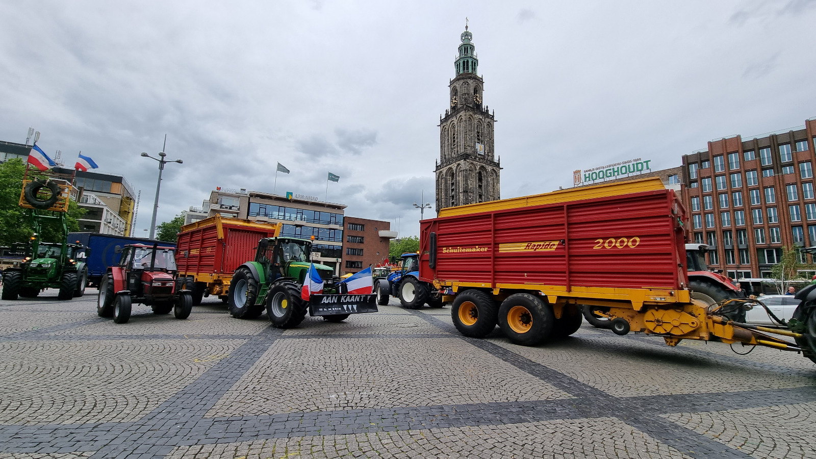 Boeren hebben woensdagmiddag kortstondig geprotesteerd in de Groningse binnenstad. Men heeft een tijdje met tractoren op de Grote Markt gestaan.