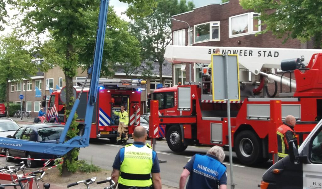 De straat werd enige tijd afgesloten in verband met het incident. Voor zover bekend bleef de man in de hoogwerker ongedeerd.
