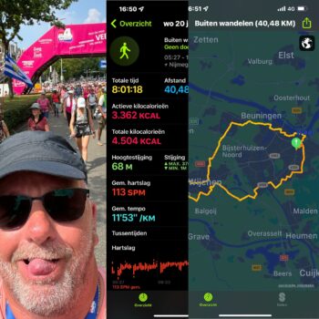 “Nee, ik denk dat de beslissing van de organisatie prima was. Er waren ook heel veel watertappunten. Dus daar lag het niet aan. Wel heb ik geluiden gehoord dat de organisatie overweegt om het wandelevenement volgend jaar op een later tijdstip in het seizoen te willen gaan organiseren. Dat lijkt me een verstandig besluit, ook omdat je ziet dat de zomers in Nederland steeds warmer worden.”