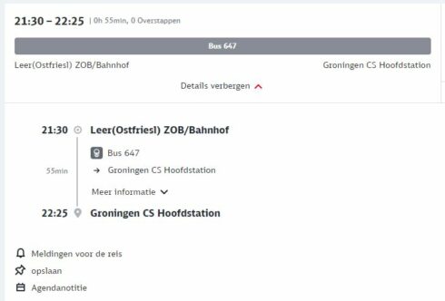 Wie tegenwoordig een reis plant naar Groningen ziet dit in de reisplanner van Deutsche Bahn staan.