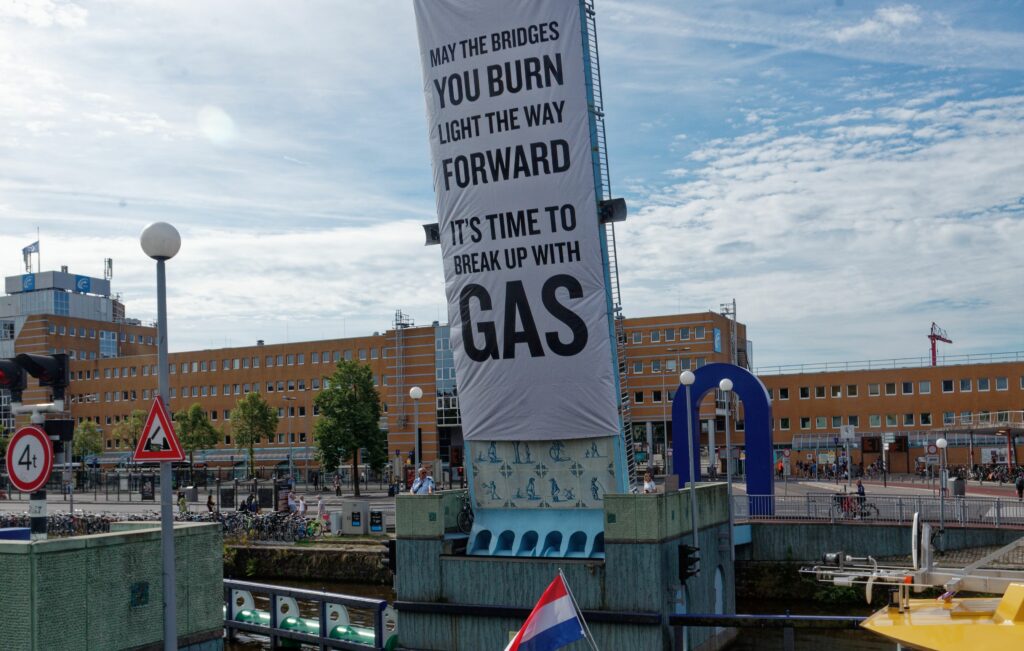 Het ’typografische kunstwerk’ was maandagochtend voor het eerst te zien onder de brug. Op de levensgrote banner onder de Werkmanbrug staat de tekst ‘May the bridges you burn light the way forward / It’s time to break up with gas.’ De tekst moet aan het museum laten zien dat geld aannemen van fossiele bedrijven niet acceptabel meer is, ten tijde van klimaatverandering.