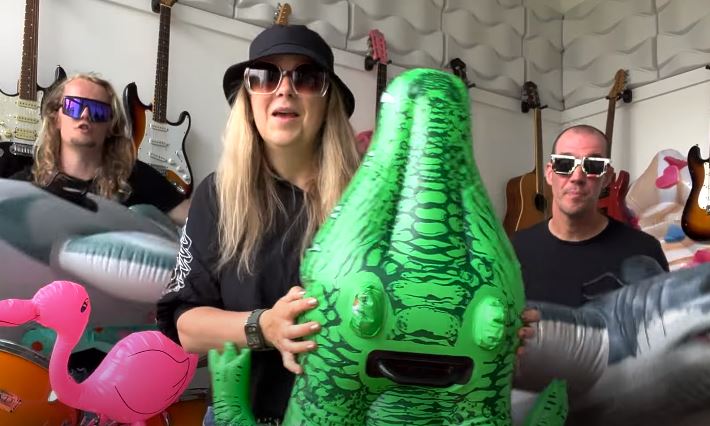 “We proberen ieder jaar iets geks, iets bijzonders, te doen. Kijk als docent heb je een rol. Een rol die wij met verve vervullen. Maar zo aan het einde van het jaar vinden we dat we onze leerlingen best wel een beetje mogen klieren. Klieren op een leuke manier. De afgelopen jaren hebben we al van alles gedaan, en dit jaar is het een zomerhitje geworden.”