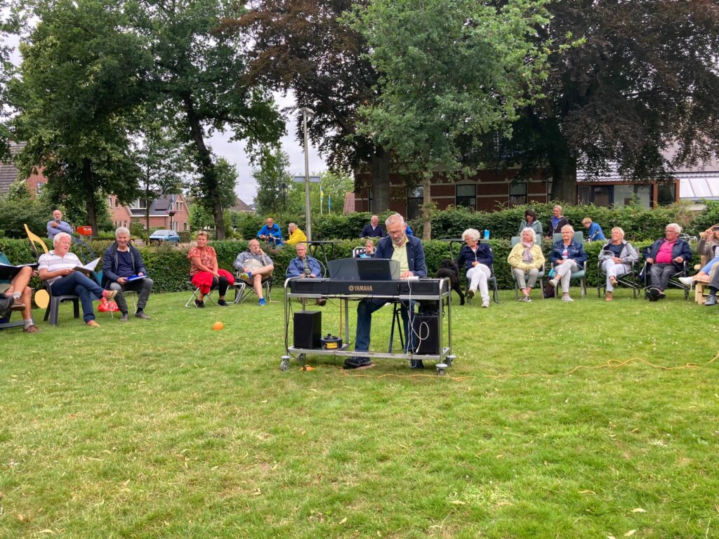“Klopt! Het was onze laatste repetitie van het seizoen, en we hebben tegen elkaar gezegd, wat zou het leuk zijn als we dit in de open lucht zouden kunnen doen, waarbij publiek aan kan schuiven. Zo gezegd, zo gedaan. We konden gebruik maken van een grasveld aan de Bakkerweg en daar hebben we gerepeteerd. Het was dus niet een concert. Bij een concert moet alles perfect gaan, bij deze repetitie werden er regelmatig aanwijzingen gegeven door de dirigent.”