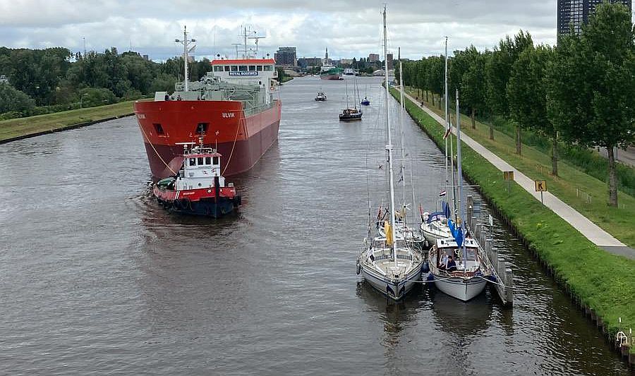 De Driebondsbrug is maandagmiddag twee keer geopend voor speciale transporten. Een aantal recreatieboten profiteerde van deze incidentele openingen en konden ook met staande mast richting Delfzijl.