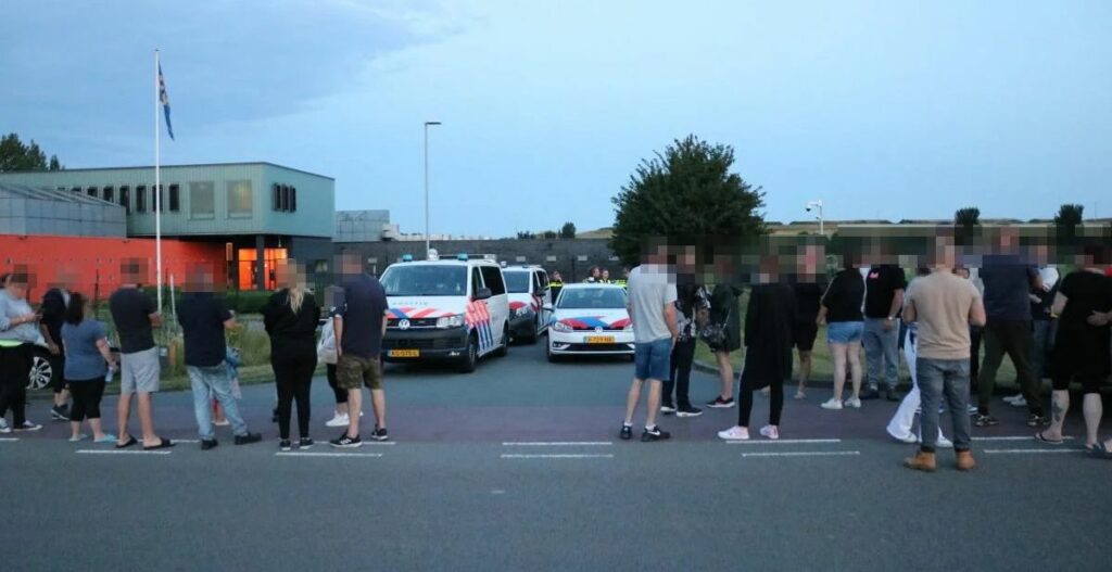 Enkele tientallen actievoerders hebben zich zondagavond verzameld bij het cellencomplex aan de Hooghoudtstraat.