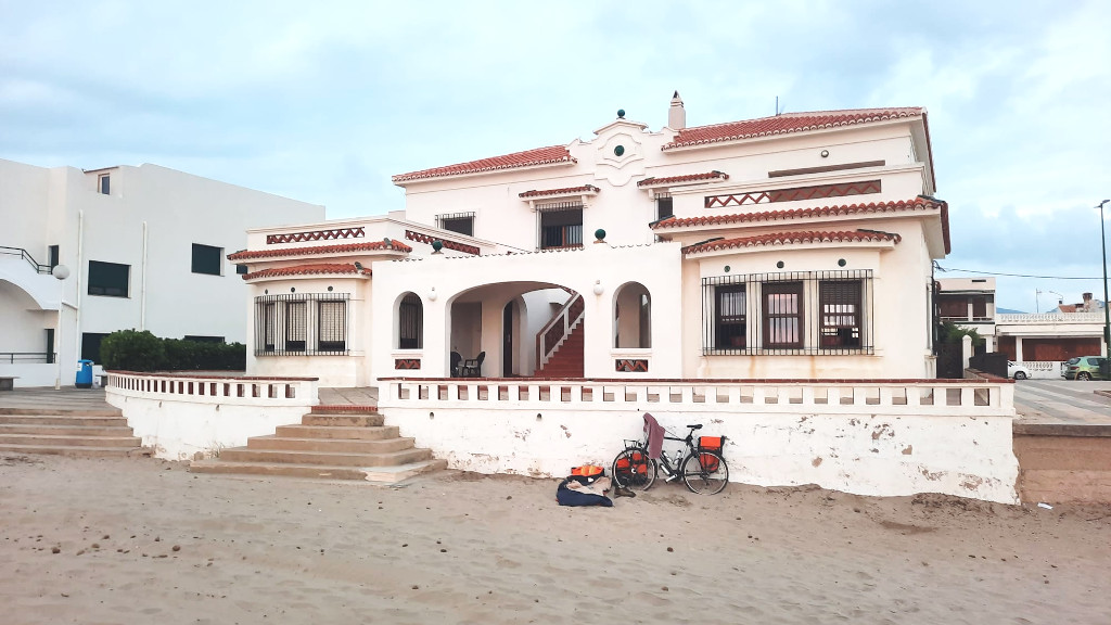 Hij bevindt zich in de kustplaats, die ongeveer 80 km ten zuiden van Valencia ligt. De afgelopen nacht heeft hij geslapen voor een strandhuis en deze morgen kon hij de zon zien opkomen. Hij ging daarna op zoek naar een koffiezaak die al open was, zodat hij even rustig kon bellen voor een update van zijn fietstocht.