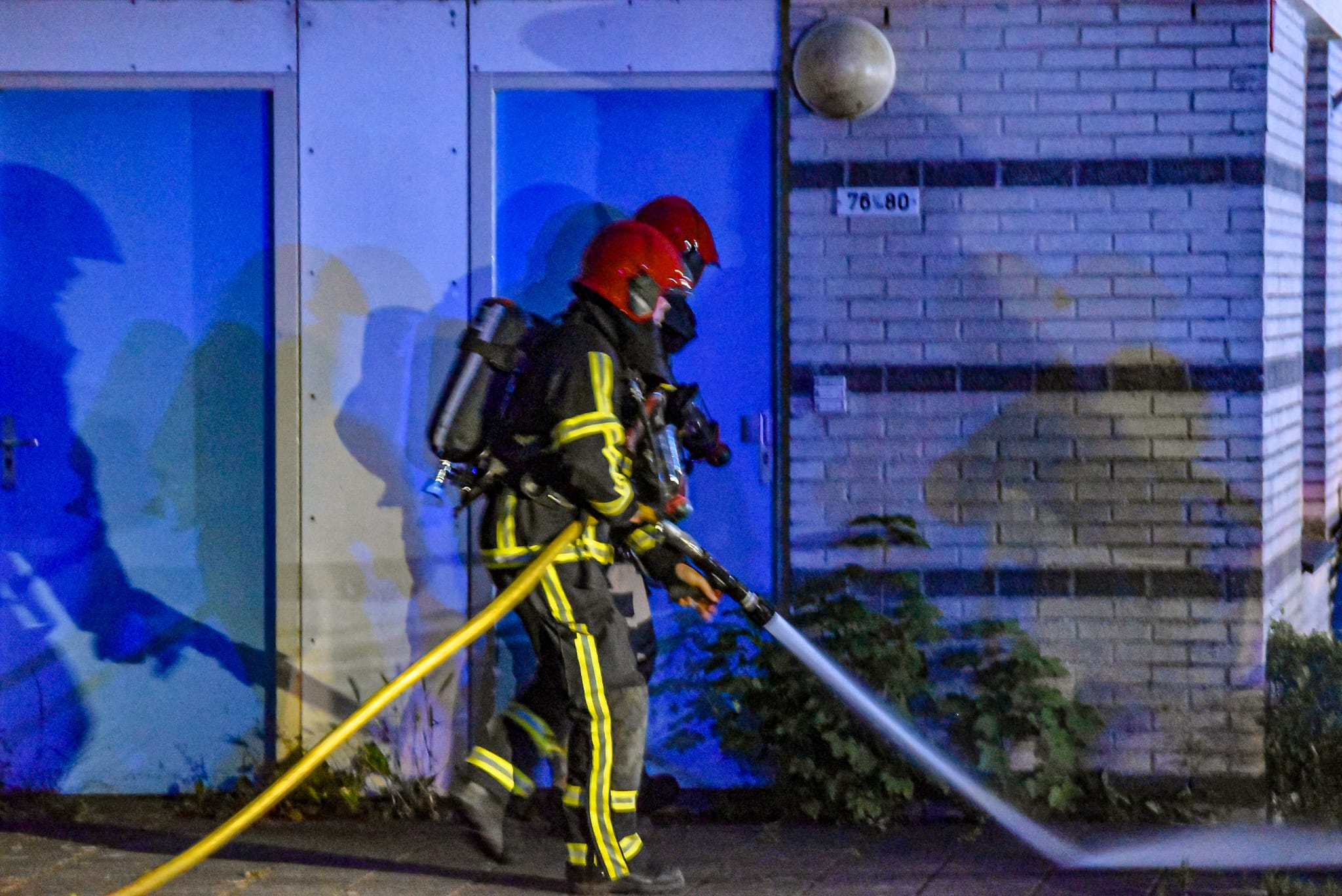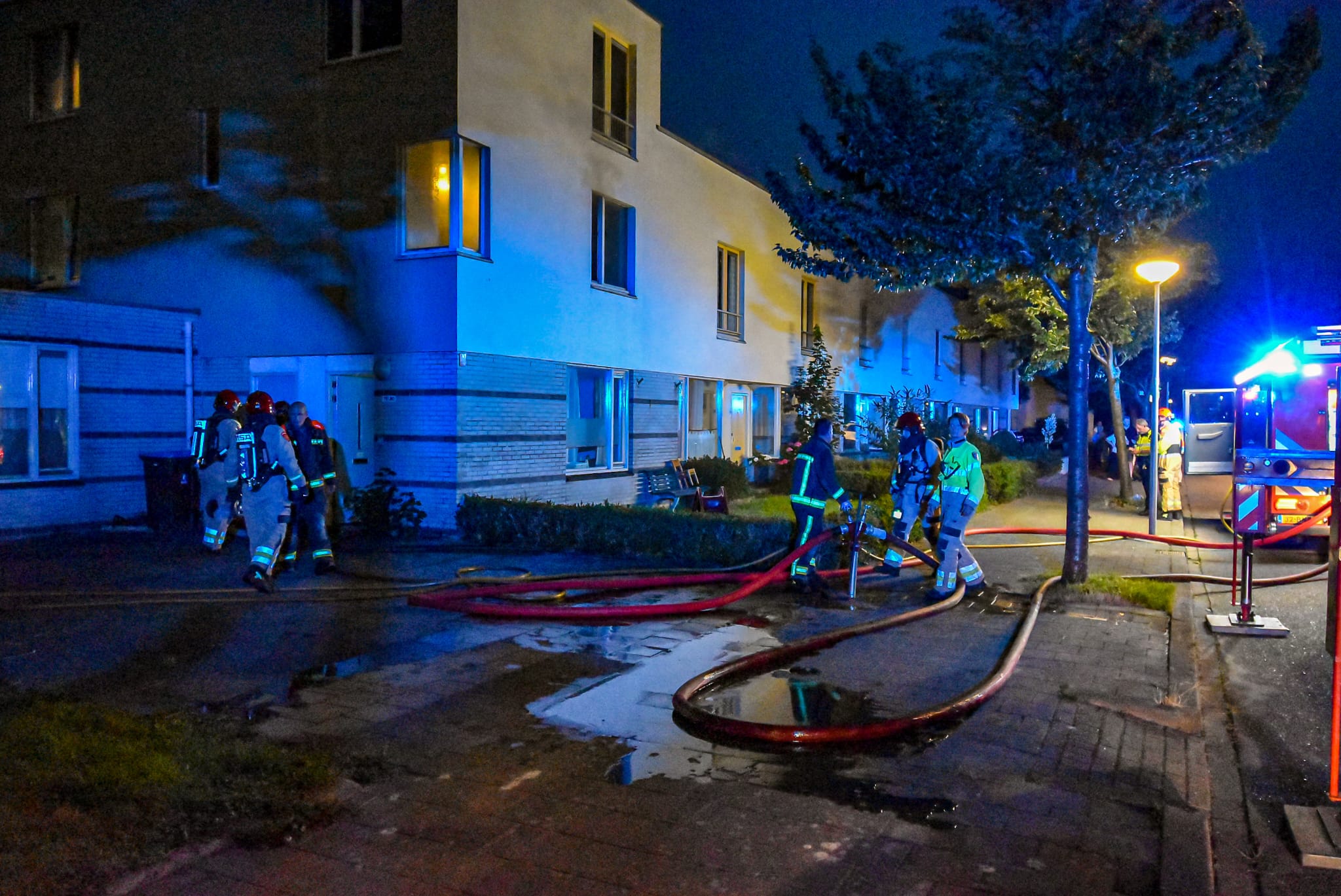 Volgens nieuwsfotografen duurde het ruim vijftien minuten voor de brandweer ter plaatse was. “Een tankautospuit reed heen en weer via de A28, alsof ze niet wisten dat de afrit naar de wijk was afgesloten. Het zag er heel gek uit.” Volgens de fotografen was de brand desondanks snel onder controle. “Brandweerlieden hebben de brand geblust, en hebben de wasmachine naar buiten gebracht. Daarna heeft men de woning geventileerd.”