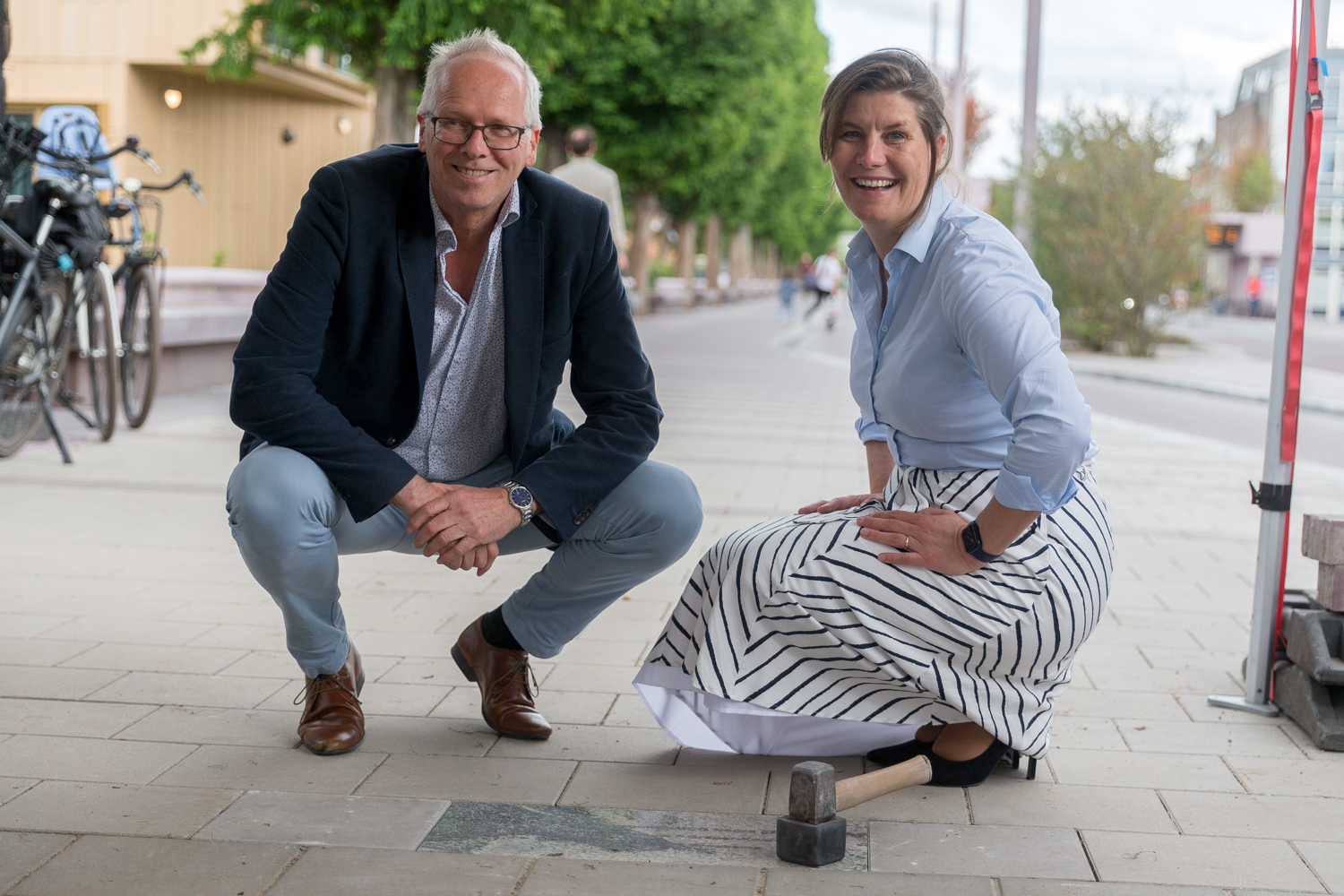 Wethouder Philip Broeksma (GroenLinks) van Verkeer en gedeputeerde Fleur Gräper (D66) van Verkeer hebben dinsdagmiddag de laatste steen gelegd van het nieuwe busstation UMCG-Noord.