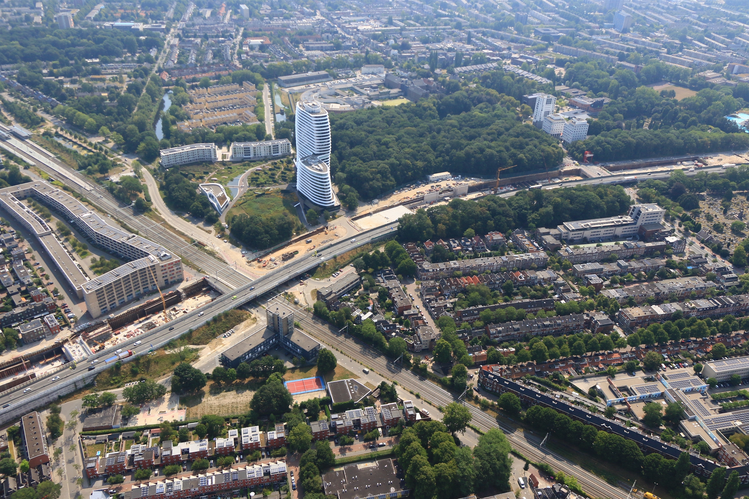 Aanpak Ring Zuid vroeg aan Rijkswaterstaat om luchtfoto’s te maken van vier deelgebieden. Het gaat om het Julianaplein, West, Zuiderplantsoen en Oost. Aan de westzijde van de stad wordt druk gewerkt aan het nieuwe Vrijheidsplein. Dit plein vormt de verbinding tussen de zuidelijke- en de westelijke ringweg. In de nieuwe situatie hoeven auto’s elkaar straks niet meer te kruisen. Op foto’s is te zien dat er druk gewerkt wordt aan de bouw van twee verbindingsbogen. De eerste boog is bedoeld voor verkeer vanaf Hoogkerk richting de westelijke ringweg, de andere boog is voor verkeer vanaf het Julianaplein naar de westelijke ringweg.