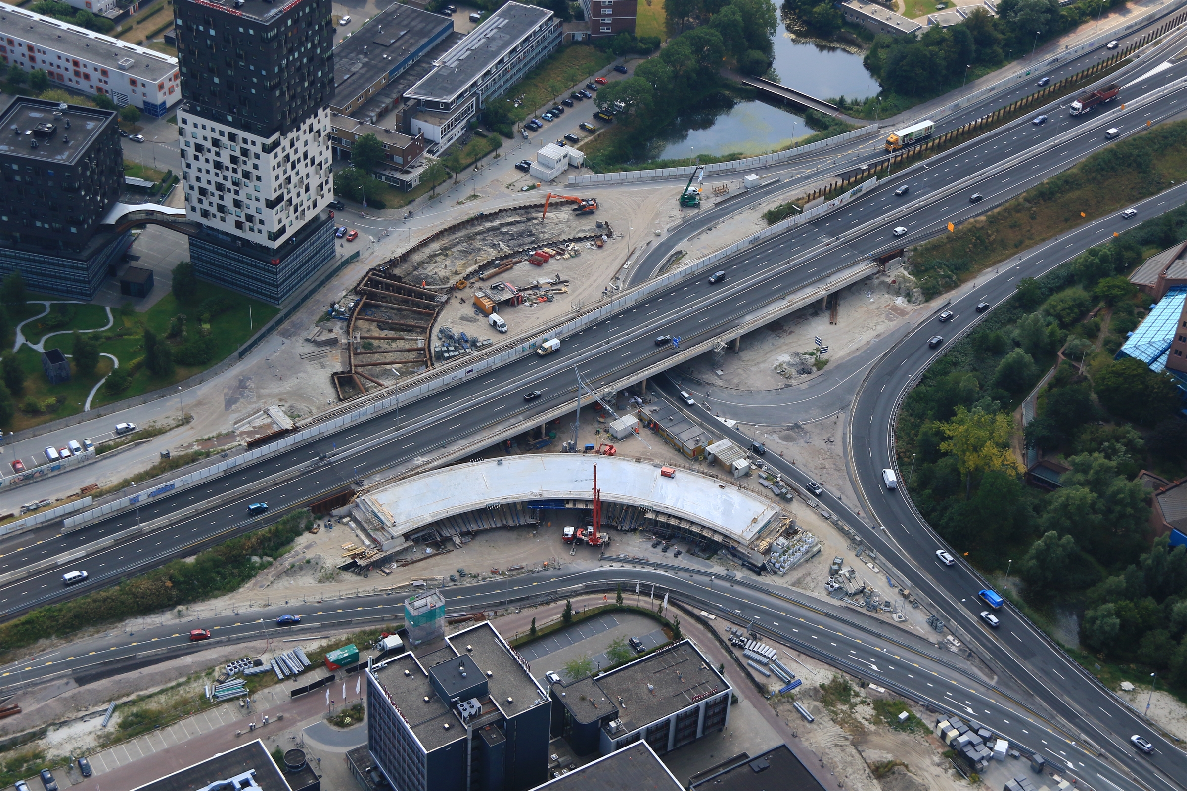 Bij het Vrijheidsplein zijn de nieuwe verbindingsbogen duidelijk te zien. Foto: Rijkswaterstaat / Aanpak Ring Zuid