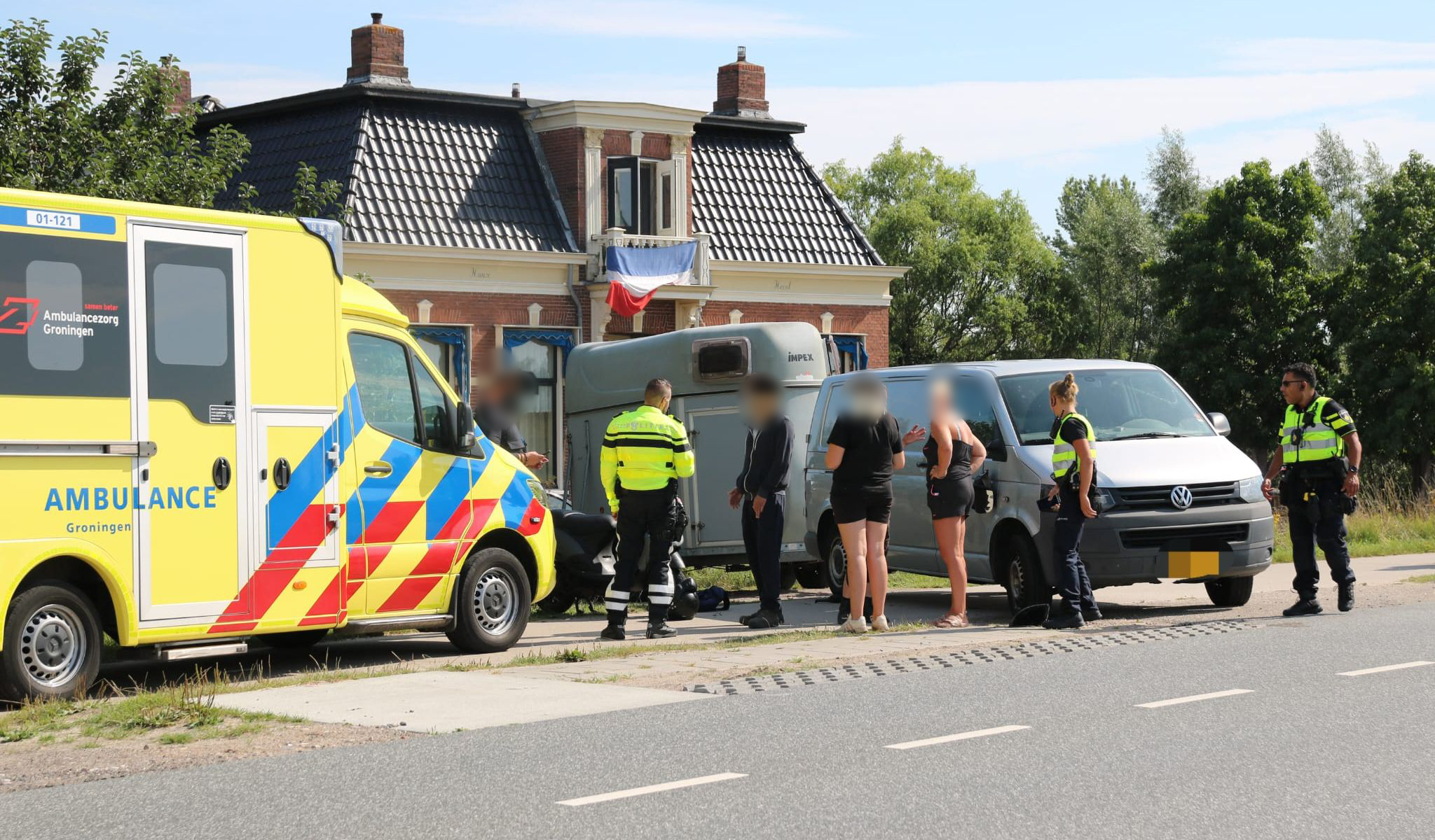 Op de Winschoterweg is dinsdagmiddag een scooter tegen een bestelbus met aanhanger gebotst. De bestuurder van de scooter raakte daardoor gewond.