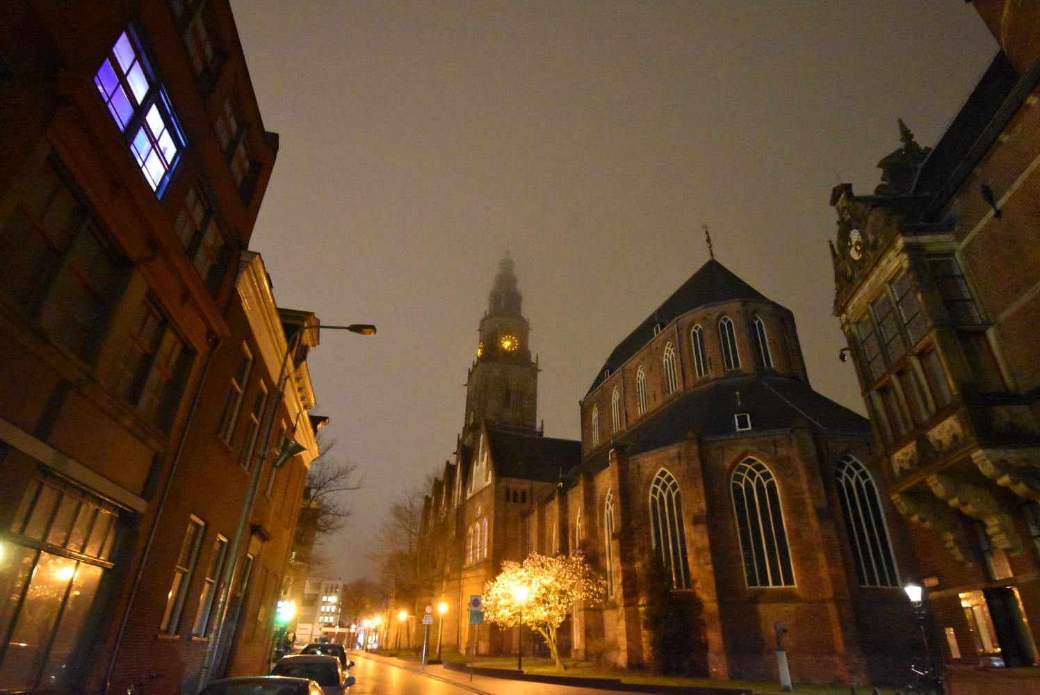 Tijdens Earth Hour was de Der Aa-kerk in het donker gehuld. Foto: Patrick Wind – 112groningen.nl