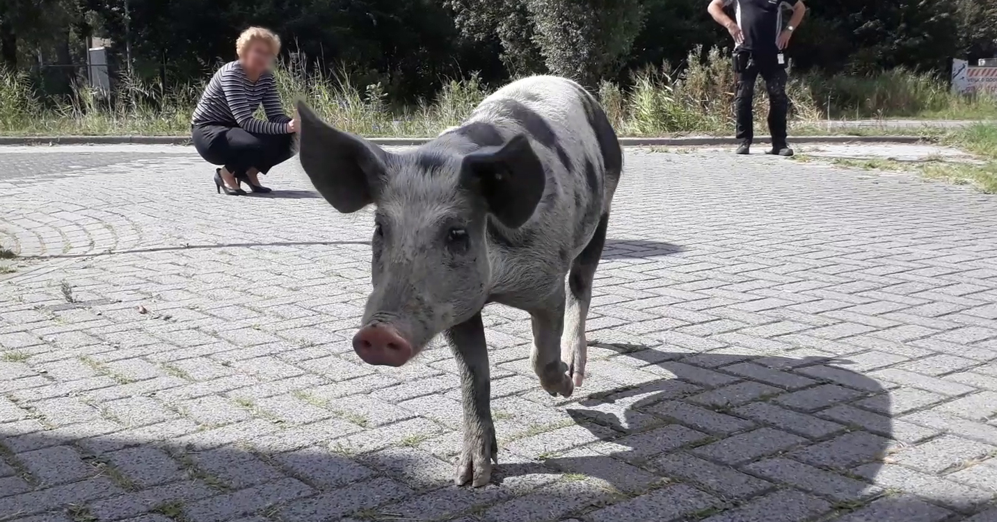 Pauzerend personeel van bedrijven aan de Kadijk keek dinsdagmiddag verbaasd naar een vreemd tafereel. Een groep mensen wandelde achter een varken aan, wat voor de tweede keer binnen een uur wist te ontsnappen.