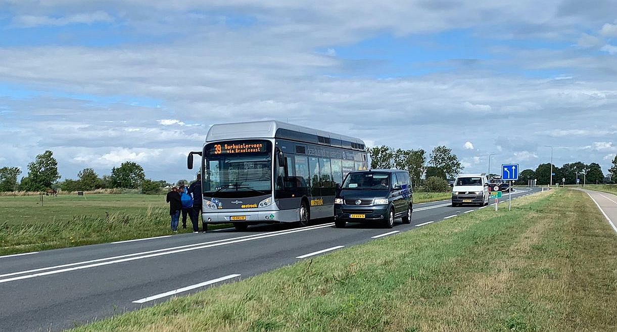 Waardoor de twee voertuigen zijn gestrand op de provinciale weg tussen Groningen en Leeuwarden, is niet bekend.