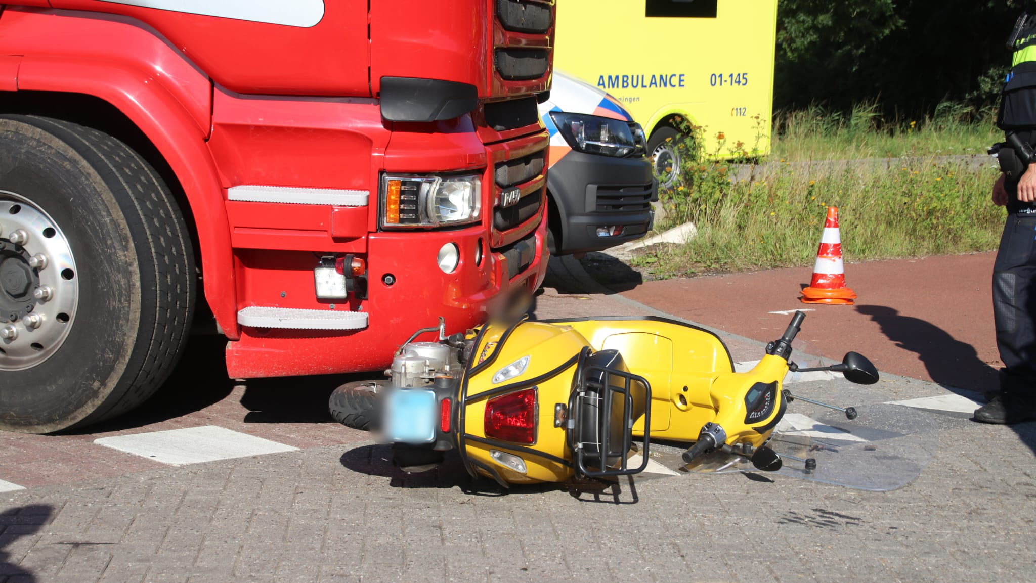 Een afslaande vrachtwagen heeft vrijdagochtend een scooter over het hoofd gezien op de Borgsloot. Het ongeluk wat daarop volgde, zorgde ervoor dat de scooterbestuurder gewond raakte.