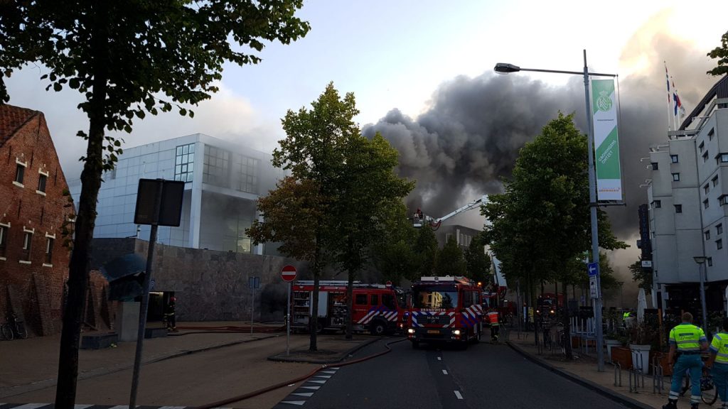 Vijf jaar geleden viel 27 augustus op een zondag. Rond 07.00 uur in de ochtend kwam er op de meldkamer Noord-Nederland een melding binnen van een rookmelder in het gebouw die rook had gedetecteerd. Daarop werden een tankautospuit en een hoogwerker van de kazerne aan de Sontweg ter plaatse gestuurd. “Toen we arriveerden zagen we een klein kringeltje rook”, vertelt Arjan Mulder, die één van de brandweermannen was op de eerste auto die arriveerde. “Dat brandje hebben we zo uit, dacht ik.” Maar als hij zich even later omdraait is het kleine kringeltje rook veranderd in een enorme rookkolom. “We snapten er niks van. Dat een brand zo snel zo groot wordt, dat kan normaal gesproken helemaal niet.”