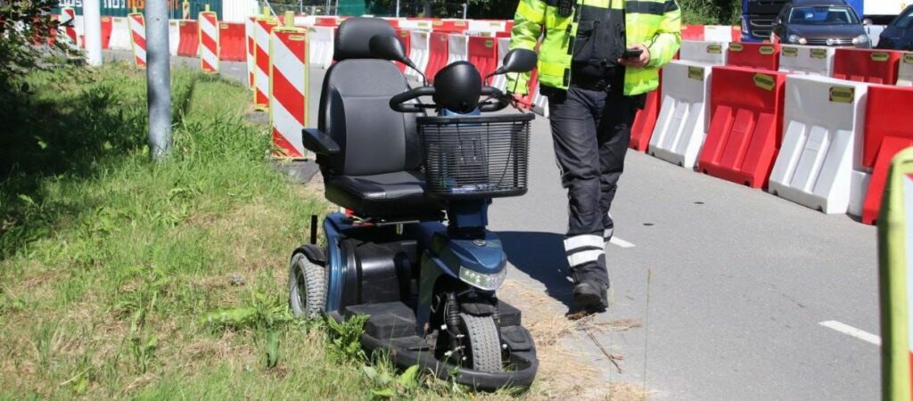 Zowel de scootmobiel als de auto raakten licht beschadigd. De toerit naar de A7 was door het ongeval tijdelijk afgesloten.