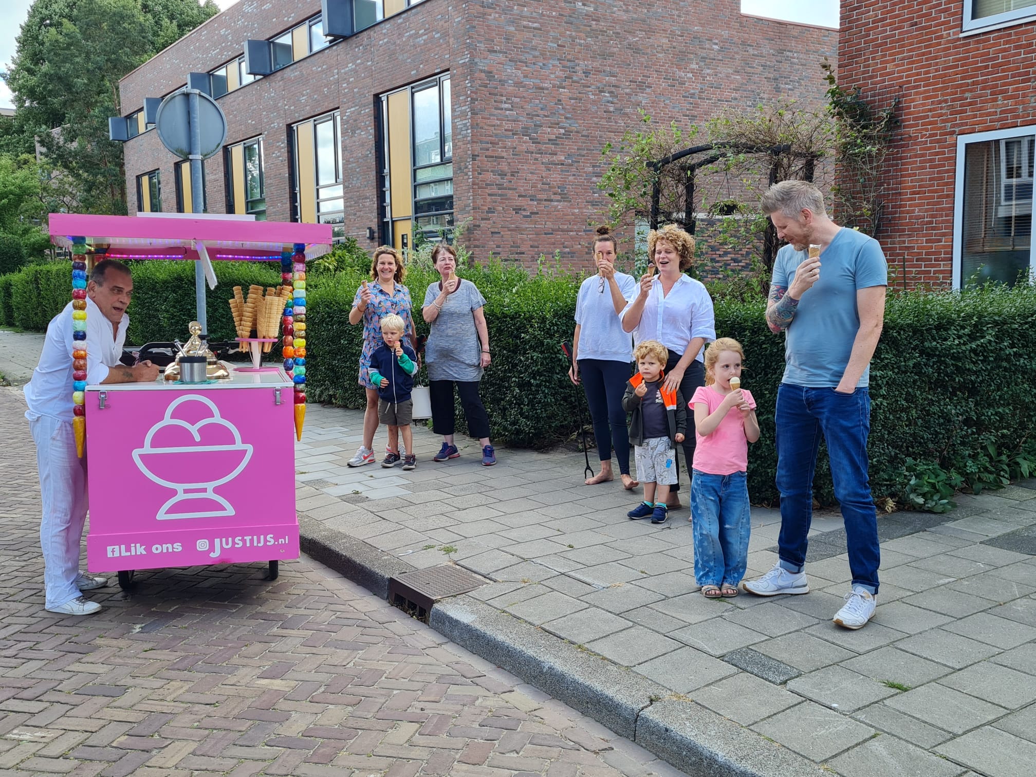 Bewoners van de Hyacinthstraat in de Oosterparkwijk werden zondagmiddag getrakteerd op ijsjes. De straat is onlangs uitgeroepen tot de schoonste straat in de wijk.