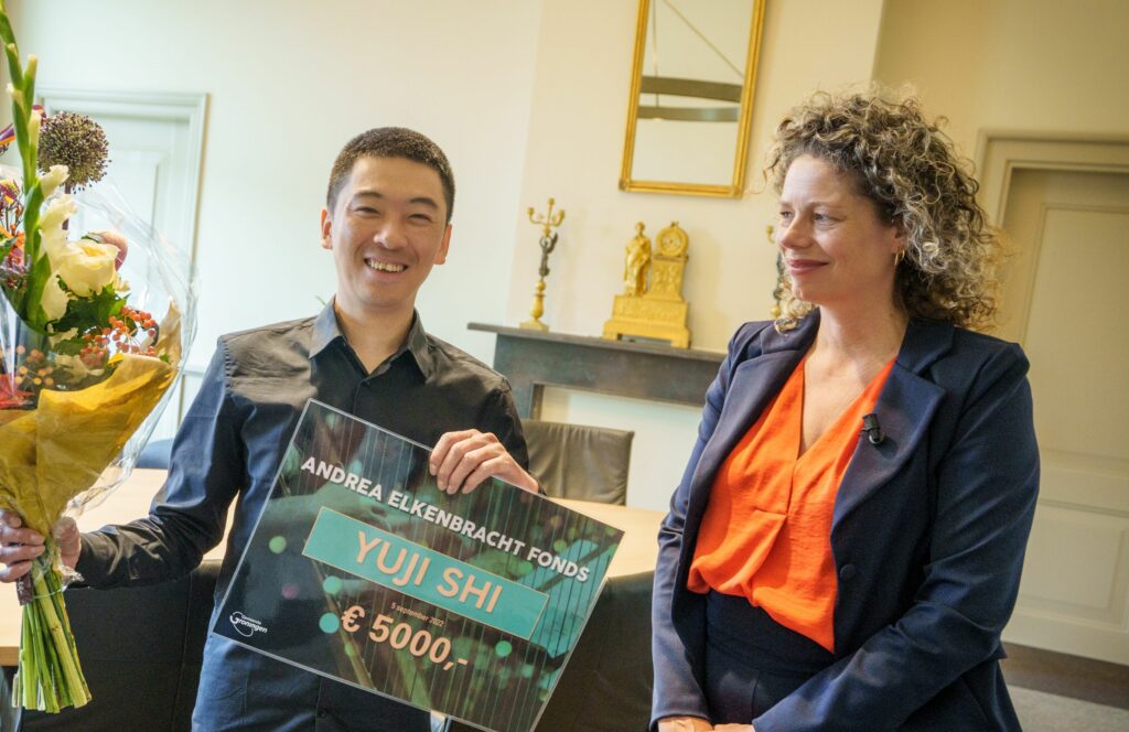 De Chinese saxofonist Yuji Shi heeft de jaarlijkse beurs van het Andrea Elkenbrachtfonds gekregen. De masterstudent aan het Prins Claus Conservatorium kreeg maandagochtend een cheque van 5.000 euro van wethouder Kirsten de Wrede. Yuji gaat het geld gebruiken om een paar maanden in New York te studeren.