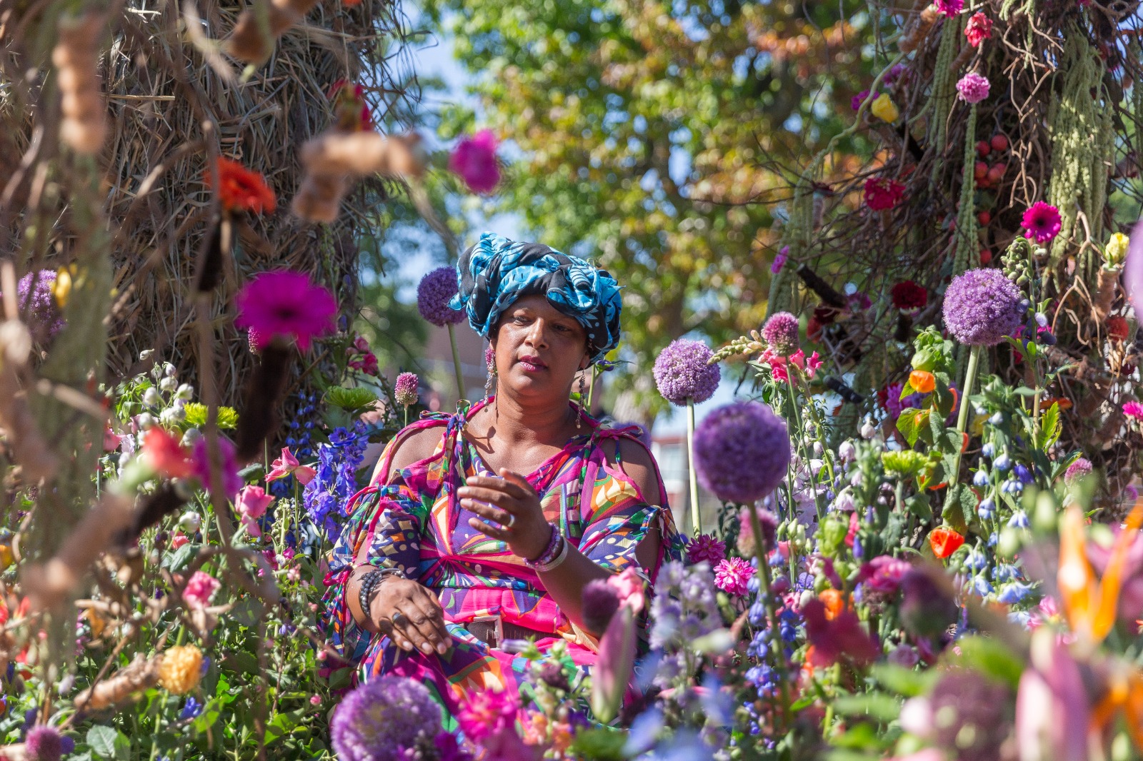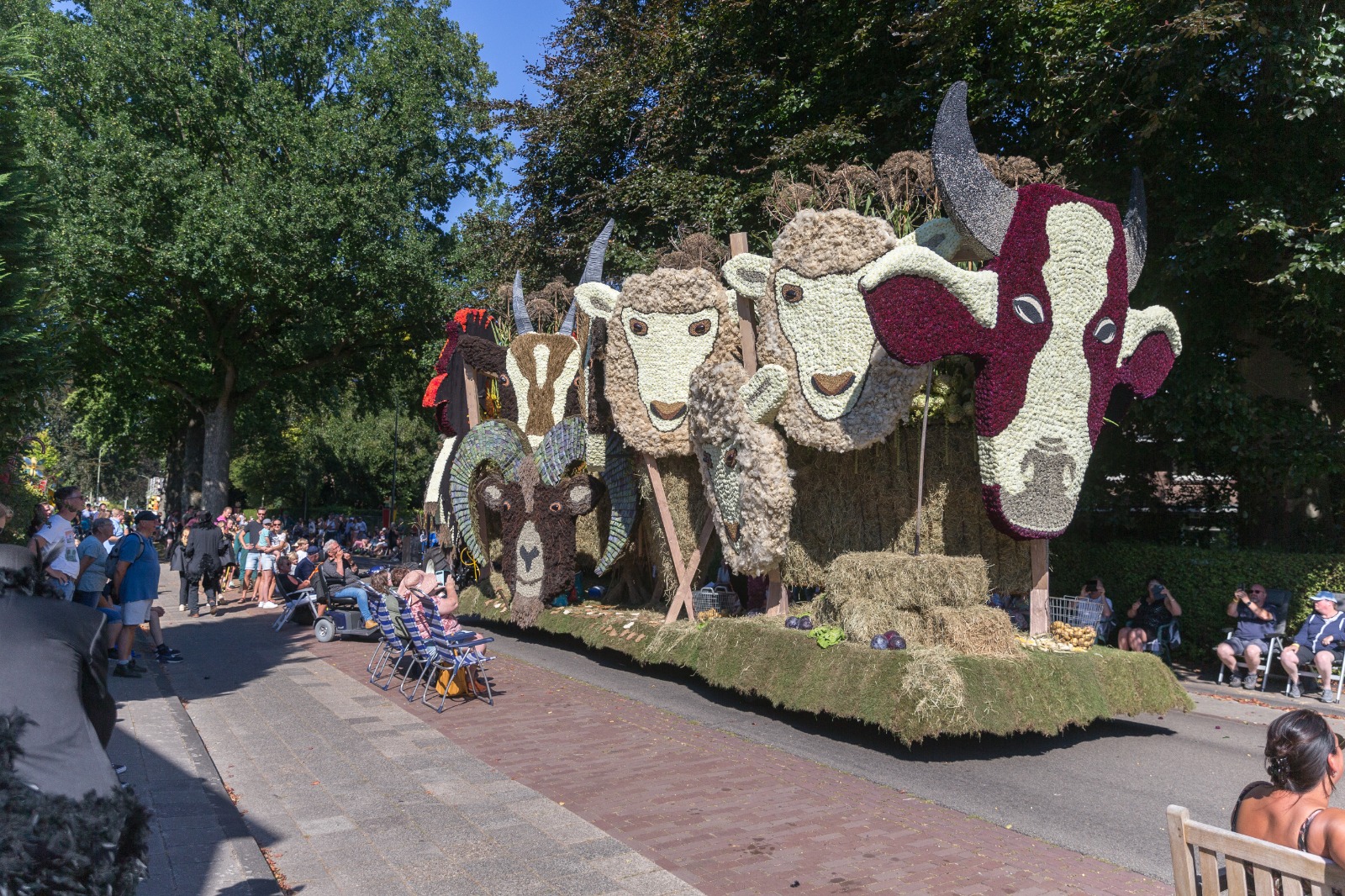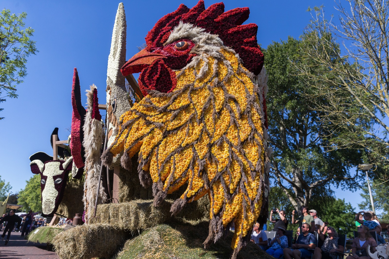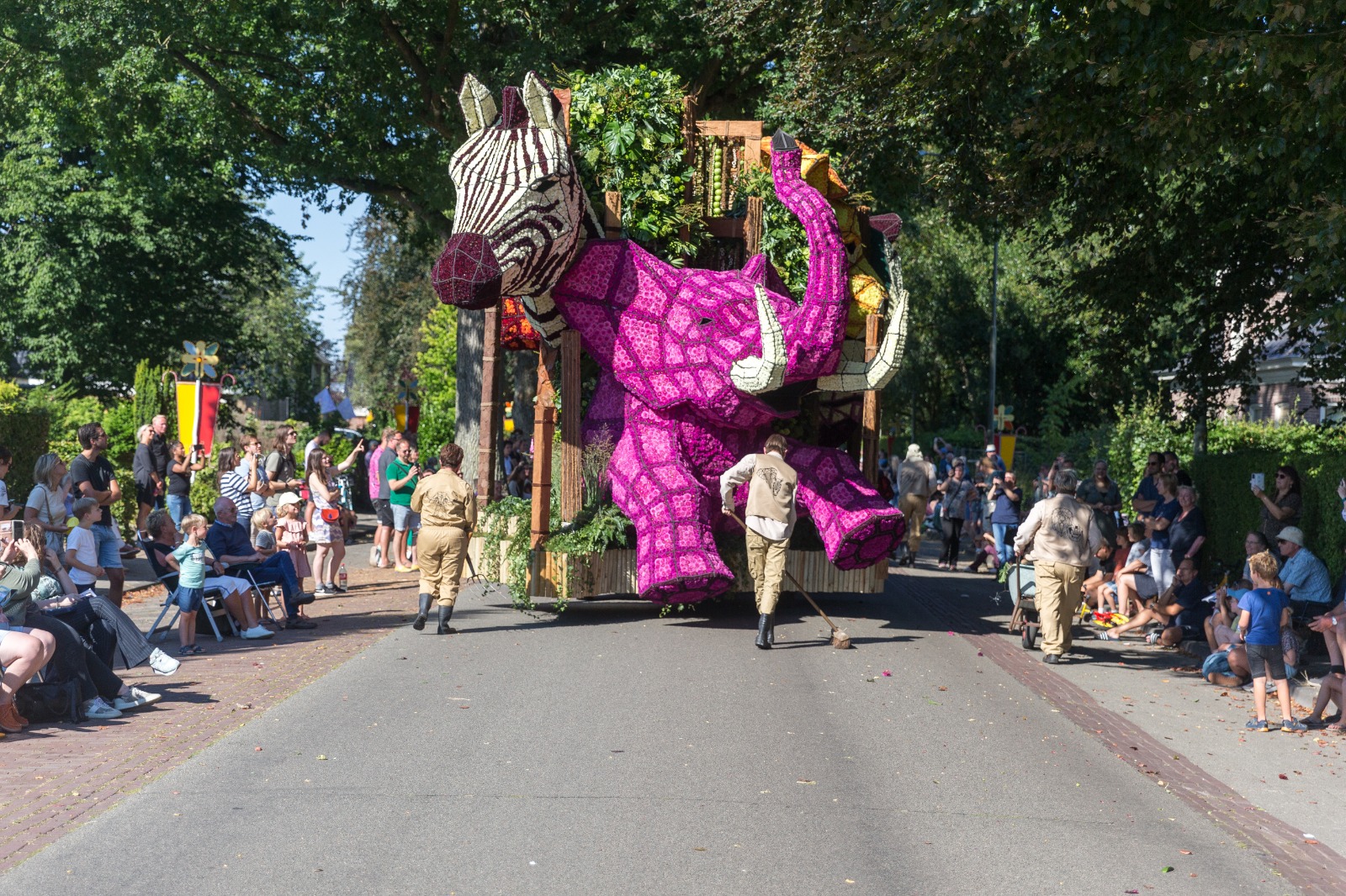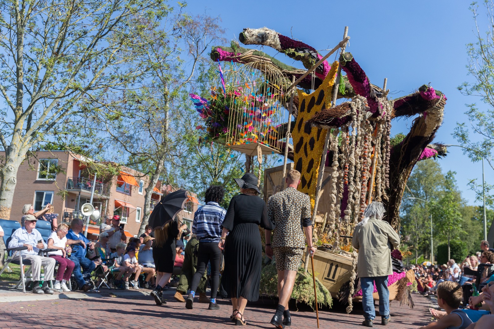 Inwoners van Eelde en omgeving waren zaterdagmiddag uitgelopen om een mooi plekje langs de route van de corsowagens te bemachtigen. In het dorp vindt dit weekend de 65ste editie van het Bloemencorso Eelde plaats.