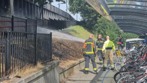 De melding van een natuurbrand kwam rond 14.00 uur binnen waarop een tankautospuit ter plaatse werd gestuurd. “De brand ging gepaard met flink wat rookontwikkeling”, vertelt Wind. “Door nog onbekende oorzaak heeft het talud, bij de fietsenstalling, vlam gevat. Dit talud bestaat uit gras en heide en is door de geringe hoeveelheid neerslag van de afgelopen periode erg droog geworden.”