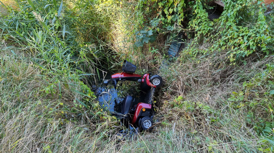 Een vrouw is donderdag tegen het middaguur aan de Beijumerweg met haar scootmobiel in het water geraakt.