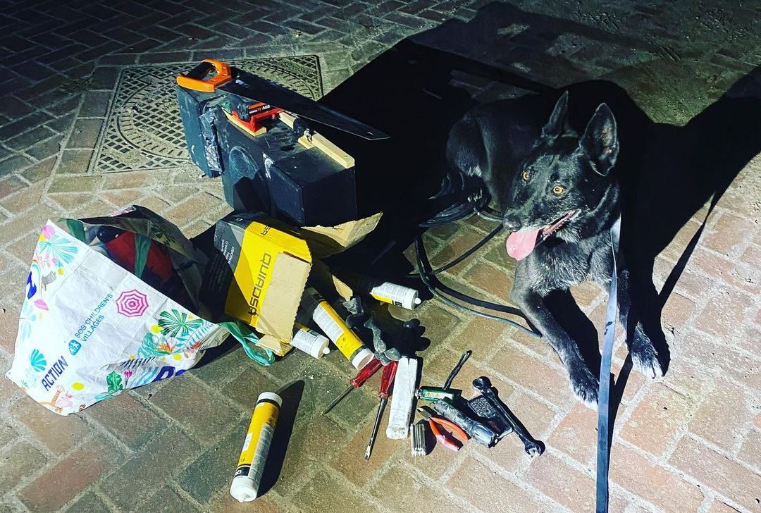 Agenten en hond Bløf vonden, nog voordat de mannen in het vizier waren, al de koud gelegde buit van de twee inbrekers. De neus van Bløf leidde de agenten vervolgens naar een naastgelegen braakliggend terrein. Daar trof het politieteam de twee inbrekers aan in een stuk bossage, met inbrekerswerktuig in hun bezit.