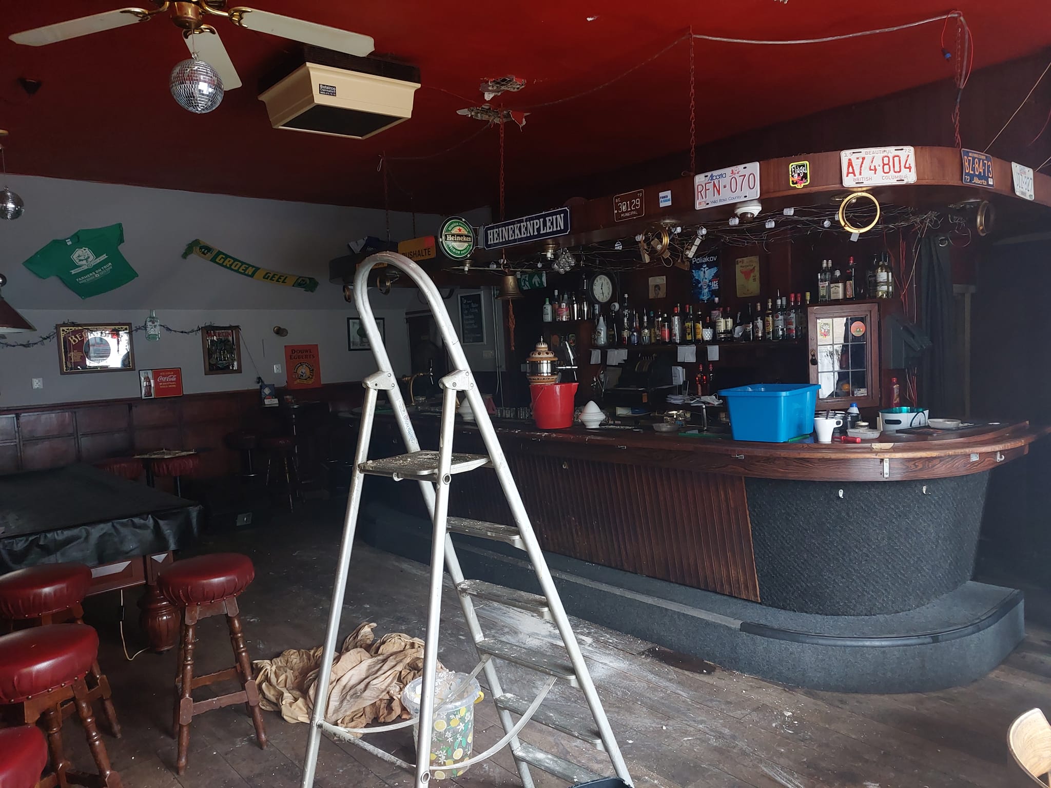 Afgelopen donderdag bleek er een lekkage te zijn ontstaan op een bovenverdieping. Het water kwam via het plafond naar beneden en kwam in de kroeg terecht. “Ik kan wel janken”, laat Heersema weten. “Het gaat om een grote lekkage waardoor we donderdag hebben moeten besluiten om de kroeg voor een aantal dagen dicht te houden. Het idee was om in die dagen alles te repareren om snel weer open te kunnen. Nu blijkt de schade veel groter te zijn dan we eerst dachten.”