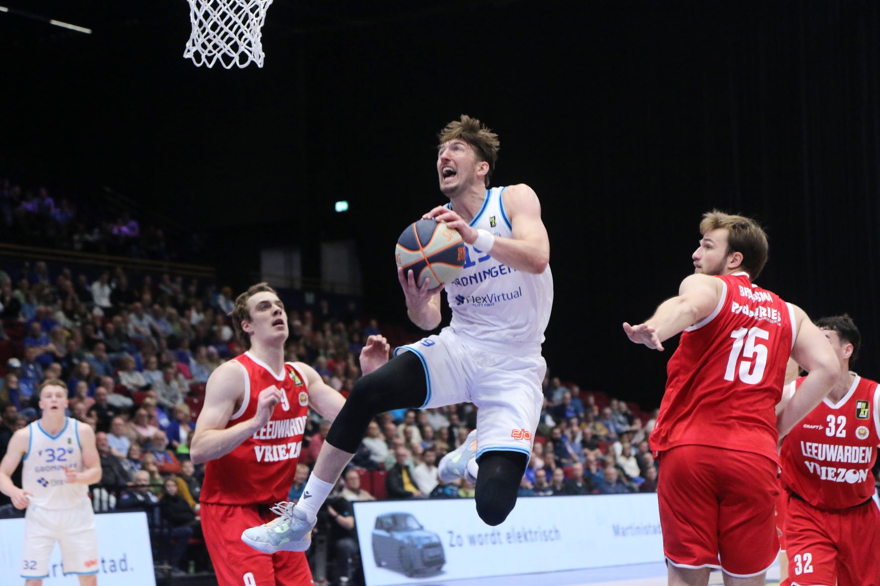 Donar-speler Willem Brandwijk onderweg naar de basket (foto: Gerrie van der Boom - FotoKlick Fotografie)