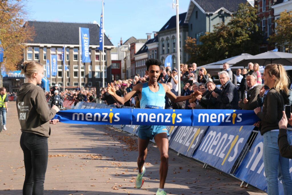 De 22-jarige Efrem Gidey heeft zondag de 35e editie van de 4 Mijl gewonnen. Bij de vrouwen won de Harense Silke Jonkman.
