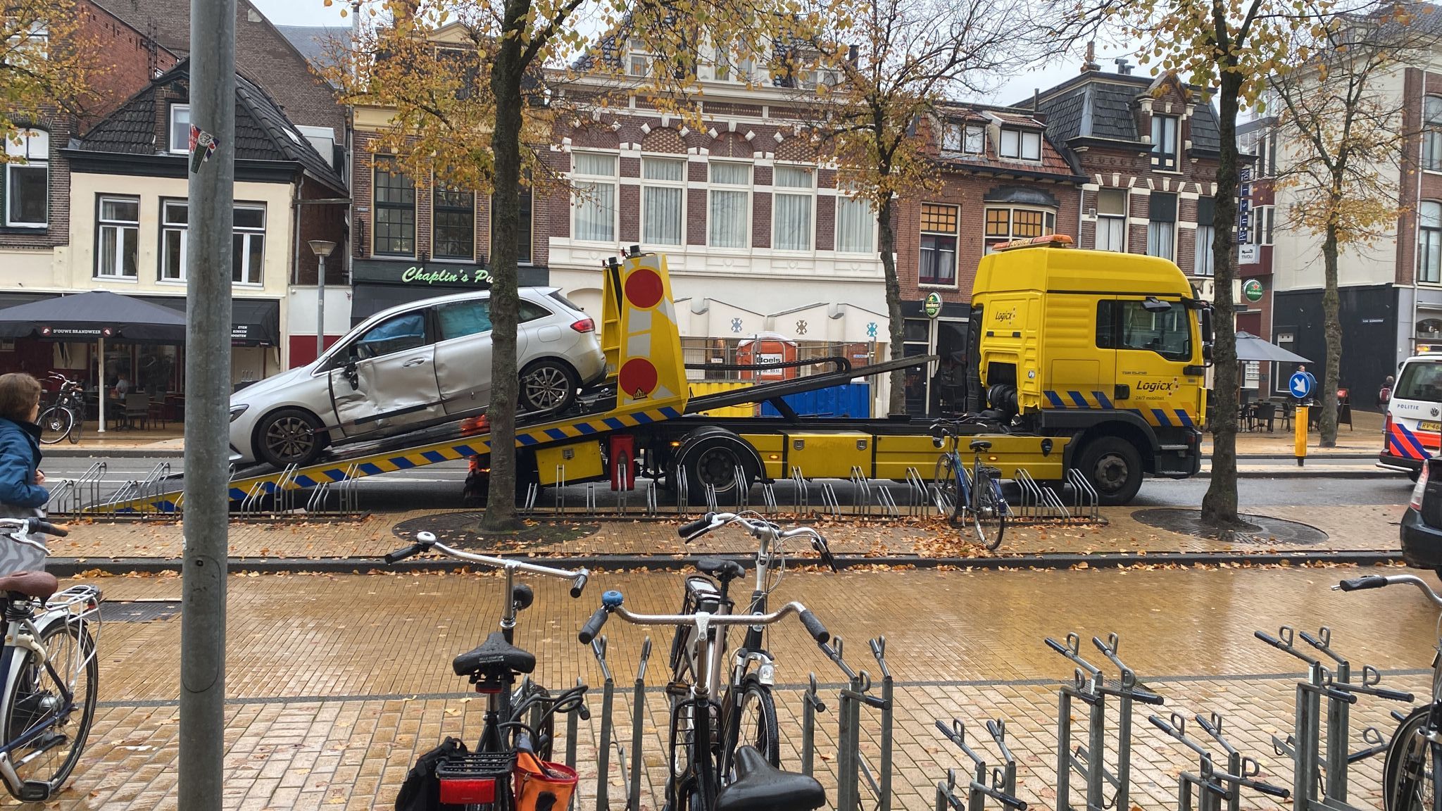Het ongeluk gebeurde kort na 15.00 uur voor de Pathé-bioscoop. Volgens aanwezigen raakte niemand gewond, maar beide voertuigen raakten wel aanzienlijk beschadigd en konden niet op eigen kracht verder.
