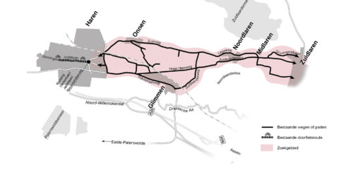 Een aantal dingen staan al vast over de doorfietsroute van Zuidlaren naar Haren: hij wordt zo’n elf kilometer lang en start in het noordelijk deel van Zuidlaren. De route moet vervolgens gaan lopen over één van twee mogelijke routes door Midlaren en Noordlaren. Voor het stuk tussen Noordlaren en Haren zijn drie opties: via Glimmen, Appelbergen of Onnen. Het eindpunt staat ook al vast, want de route moet aansluiten op de bestaande doorfietsroute tussen Groningen en Haren. Die eindigt nu bij de Jachtlaan.