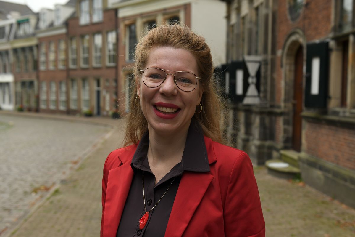 Agnes Bakker voor het Provinciehuis. Foto: ingezonden