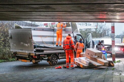 Het ongeluk gebeurde in de tweede helft van de middag. “De bestuurder heeft de hoogte verkeerd ingeschat waardoor een aanrijding het gevolg was”, vertelt Ten Cate. “De klap is fors geweest, want de bestelbus is flink beschadigd geraakt. Niemand raakte gewond. Wel is de bestuurder erg geschrokken.” Vanwege de aanrijding was de weg afgesloten. Een bergingsbedrijf heeft de ravage opgeruimd.